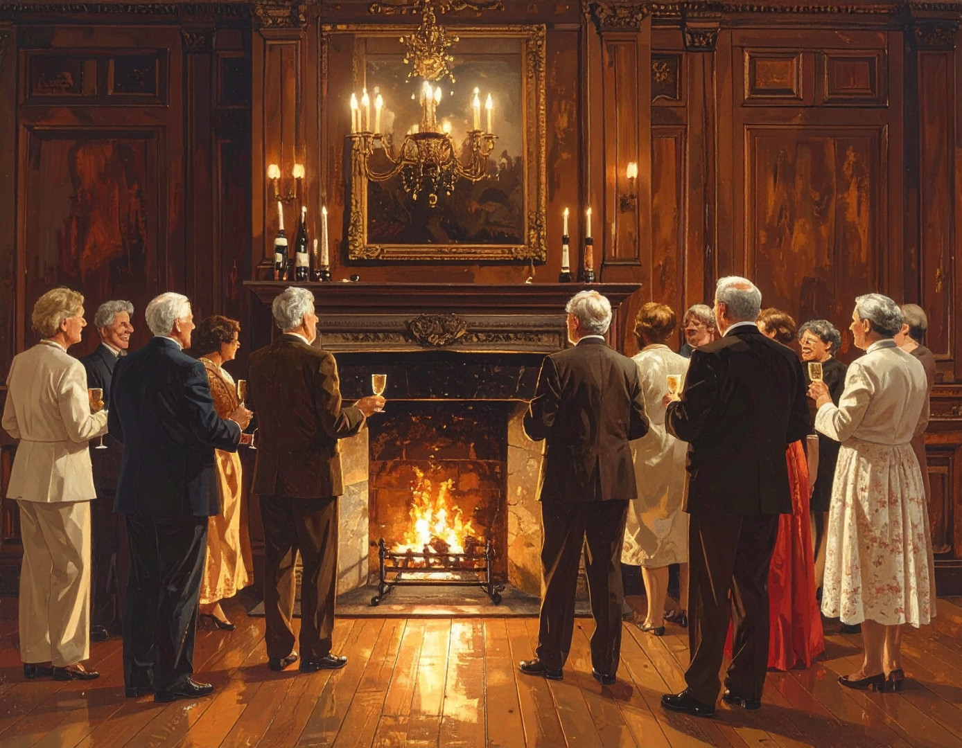 Den tradisjonelle peisaften i Trosterudvillaen ble arrangert 18. november. 38 velstelte medlemmer og ledsagere deltok. Første punkt var bobler ved peisen.